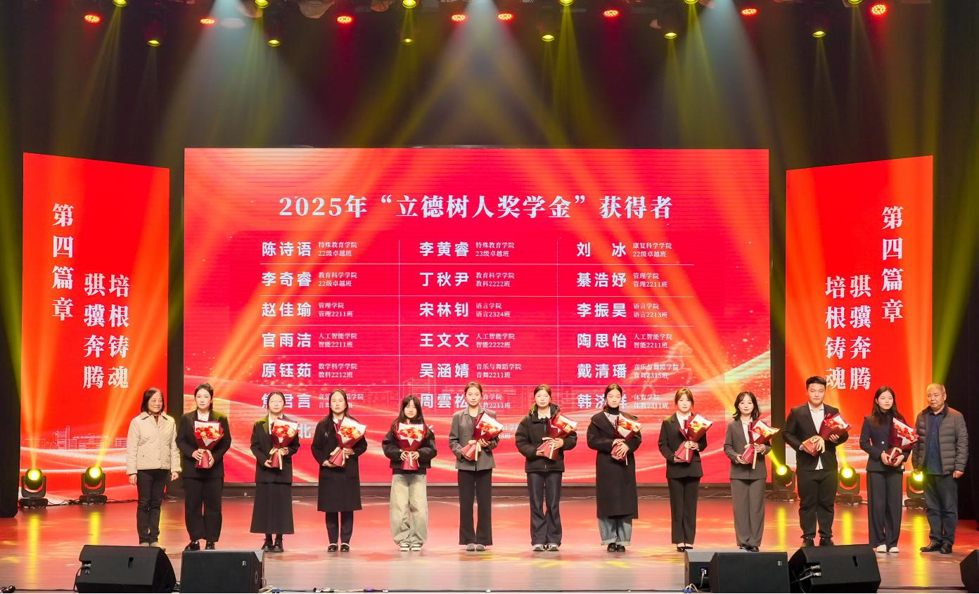 颁奖仪式上,常务副理事长眭平、副秘书长张虎成分别为获得2025年度“立德树人奖教奖学金”的10名教师、20名学生颁奖并合影留念。获奖教师和学生代表满怀喜悦依次登台,接过凝聚着荣誉与激励的证书,这不仅是对获奖师生潜心治学、德才兼优的充分肯定,更是对广大教育工作者和全体学生见贤思齐、奋发向上的有力鞭策。