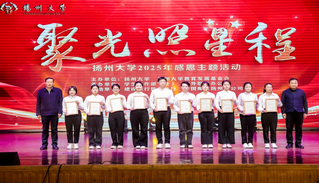 活动以主题视频《赠予光者》拉开帷幕。活动现场,扬州大学领导为各捐赠单位颁发纪念证书和捐赠证书;受助学生代表分享成长心路;演出舞蹈、诗朗诵等精彩节目。活动尾声,共同启动了2026年捐赠计划,正式续写爱与希望的接力篇章。